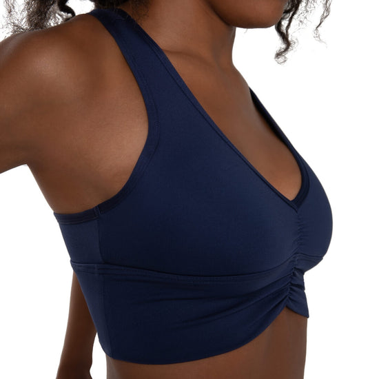 Discover the perfect blend of style and comfort with Capezio's Studio Collection Racerback Bra Top. Designed with a luxurious blend of Tactel® Nylon and Spandex fabric, this top features a curved V-front with a flattering pinch detail. The wide band gracefully tapers to a narrow center front, providing a sleek and secure fit. Removable bra padding offers customizable support, making it ideal for any activity. Made in the USA, this racerback bra top combines functionality with fashion, ensuring you look and feel your best during every practice. Available in adult and child sizes.