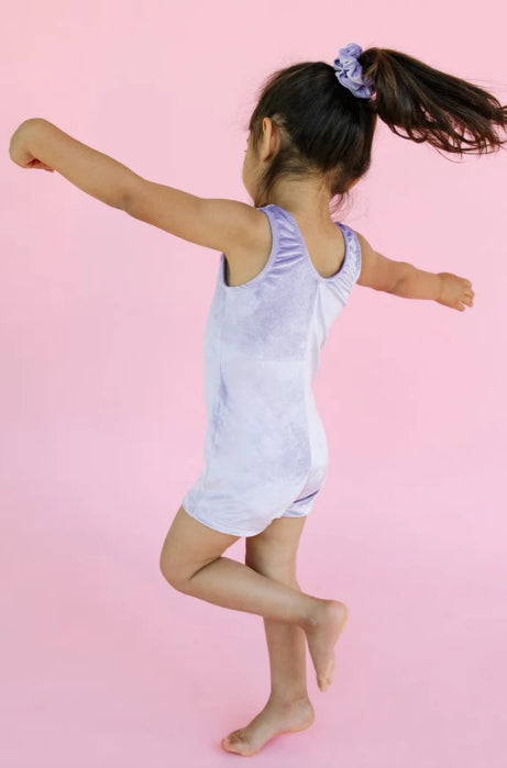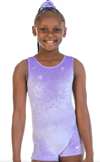 Be prepared for class every week with this timeless biketard design will support your every move with just the right amount of crystal sparkle on super soft lavender velvet. This gymnastics unitard is all about being radiant, and that never goes out of style! ✨