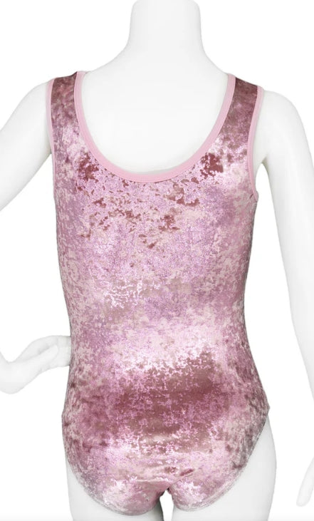 Stand out on the stage in Pink Pearl, a sweetheart dance leotard made from our soft velvet material. This dusty pink dance leotard features a rose gold foil overlay on the velvet to add a graceful shine to any dancer.