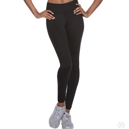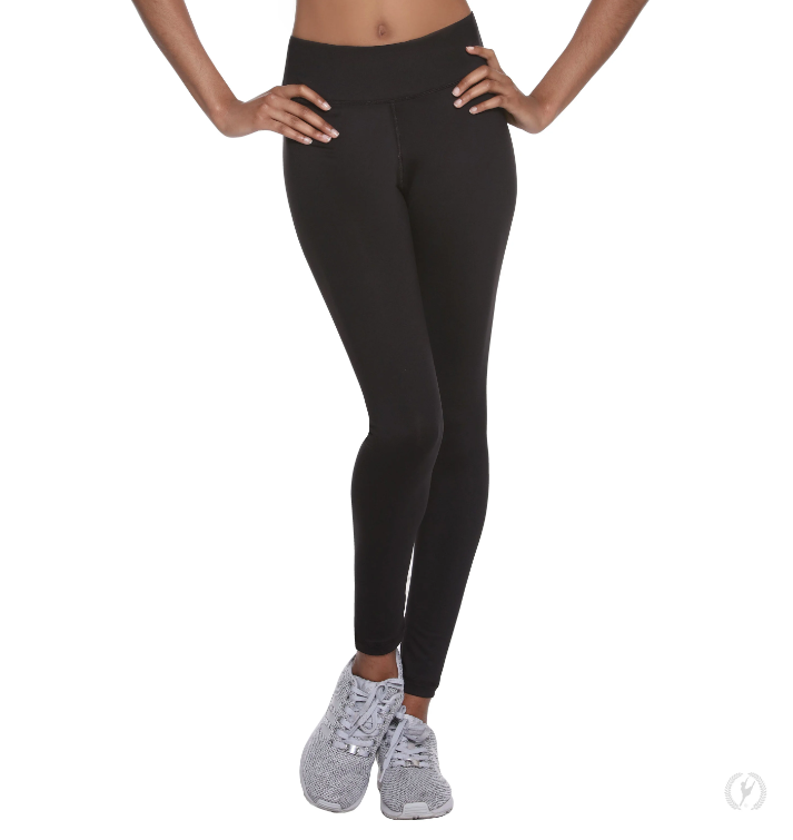 Performance Microfiber ankle leggings with a wide, comfort fit waistband that has a hidden interior key pocket along the front. Features flat reinforced seaming and light compression.