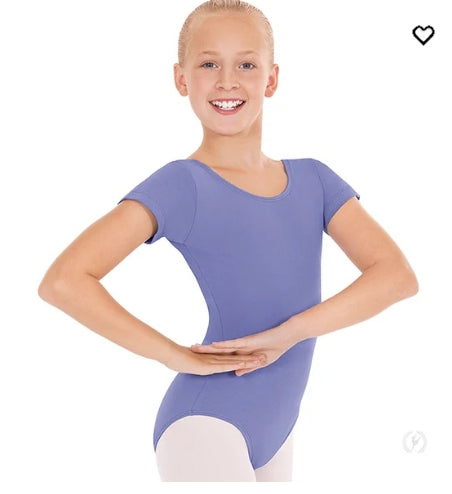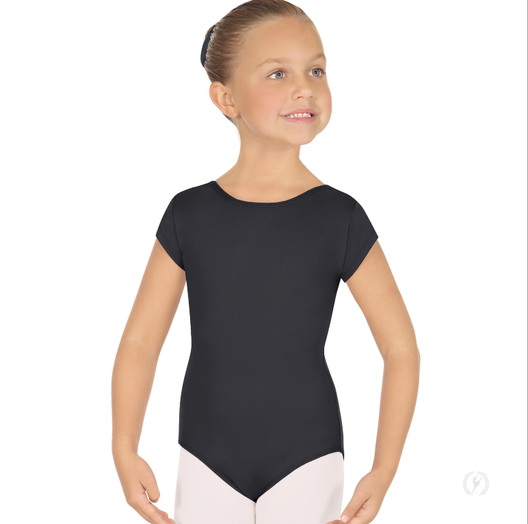This essential dance leotard features a moderate scoop neck, scoop back, and short sleeves. Made with high quality microfiber, our short sleeve leotard is not only super soft, but also incredibly durable; the strong fibers maintain their original color, fit, and feel, even after repeated wash and wear. Eurotard's signature full front, quick-dry lining adds coverage, wicks away moisture, and protects against odors. Available in a wide selection of colors and sizes (adult sizes 44475), this style is a popular leotard for dance uniforms.