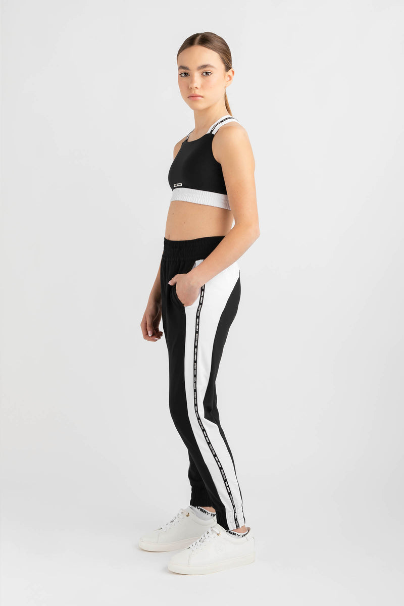 Make your move in these essential jogger styled pants. Styled in a slim fit, yet relaxed shape, these joggers sit high on the body, just above the belly button. No matter the movement, these pants have you covered, the stretch in the fabric is unrestrictive, meaning high kicks and splits come easy.