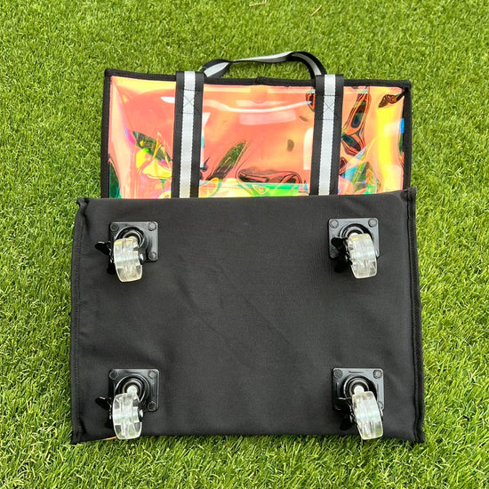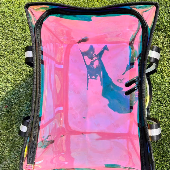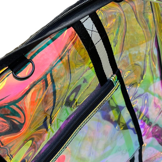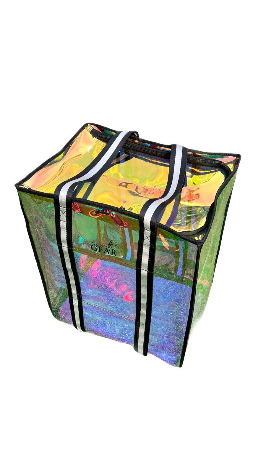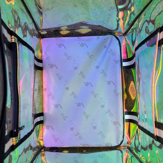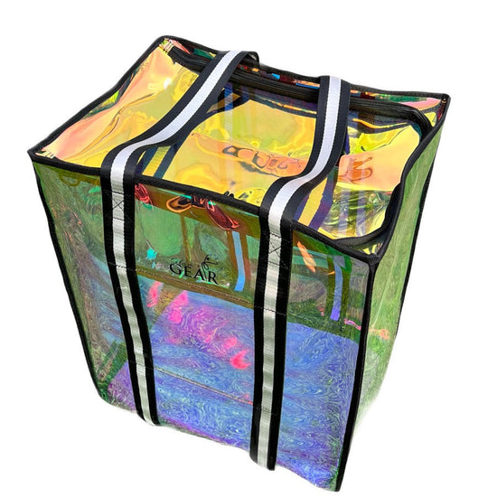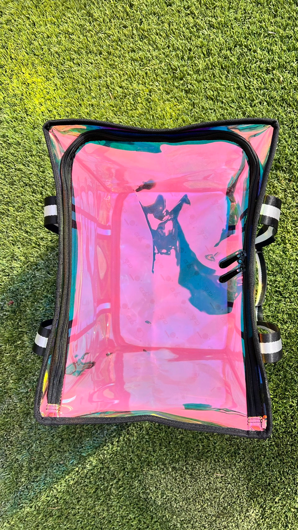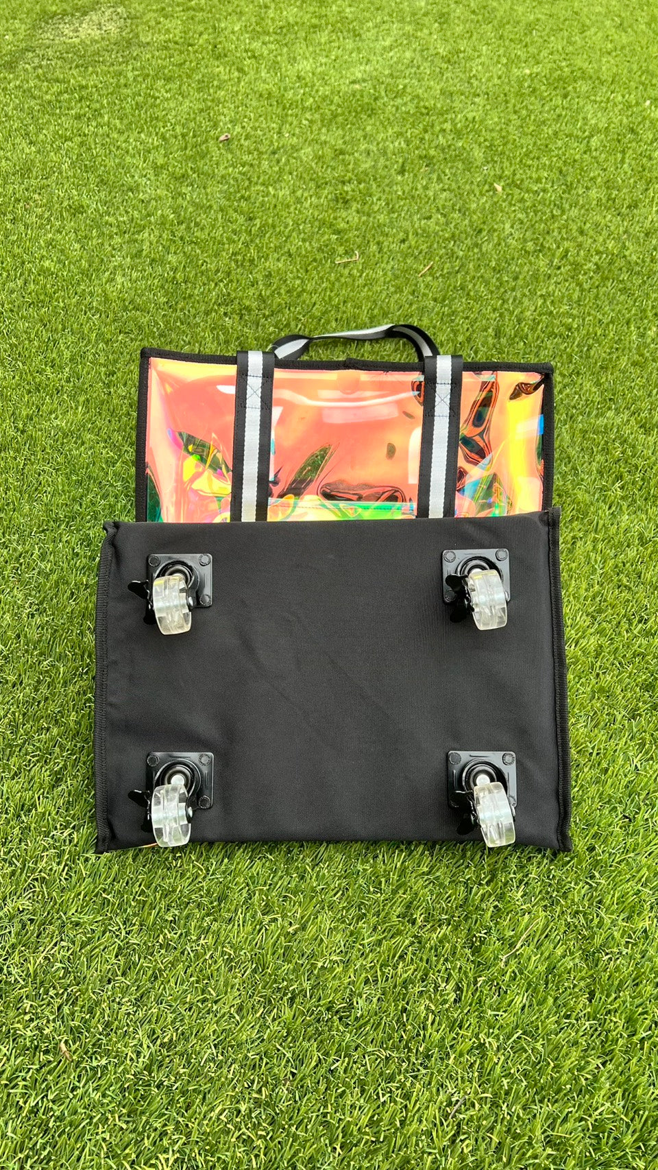 Crafted from a show-stopping semi-transparent iridescent material that catches light and turns heads, this bag doesn’t just carry your essentials – it carries vibes. With a durable build and smooth-gliding wheels, it effortlessly combines style, strength, and function.