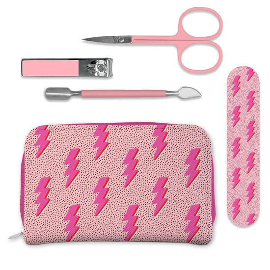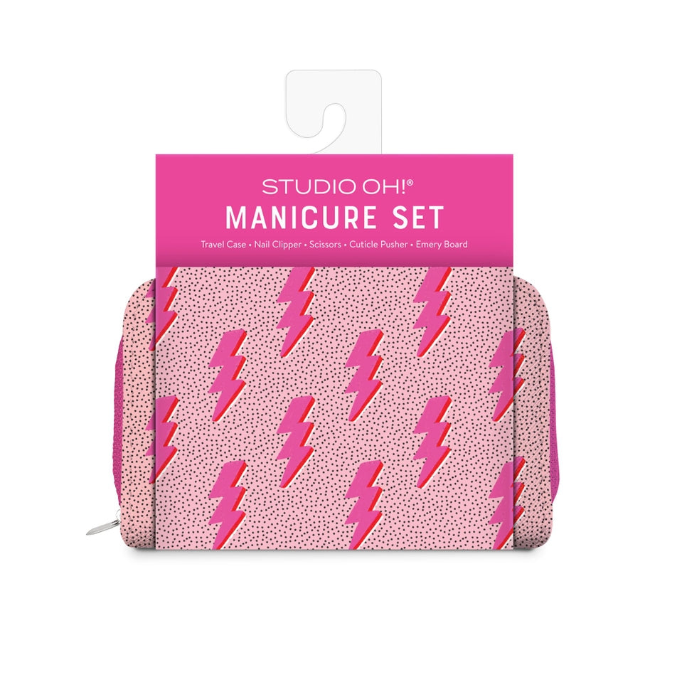 These five-piece manicure sets feature delightful full-color artwork and come with everything you need for perfectly groomed nails. The zippered travel-size case is made of a water-resistant vegan leather and holds matching nail clippers, scissors, a cuticle pusher, and an emery board. Keep one in your handbag, overnight bag, or desk drawer. Travel case, nail clipper, scissors, cuticle pusher, emery board 2.9""w x 4.6""h x .9""d (7.3 cm x 11.7 cm x 2.2 cm) • Includes four manicure tools in a zippered travel case • Closes securely for portability • Fits in a purse or backpack • Showcases original artwork