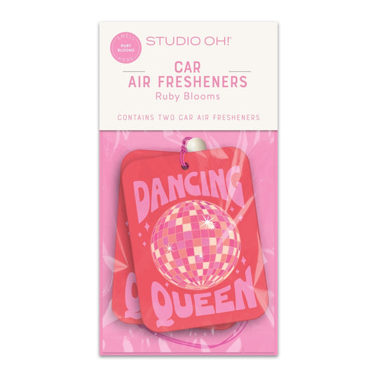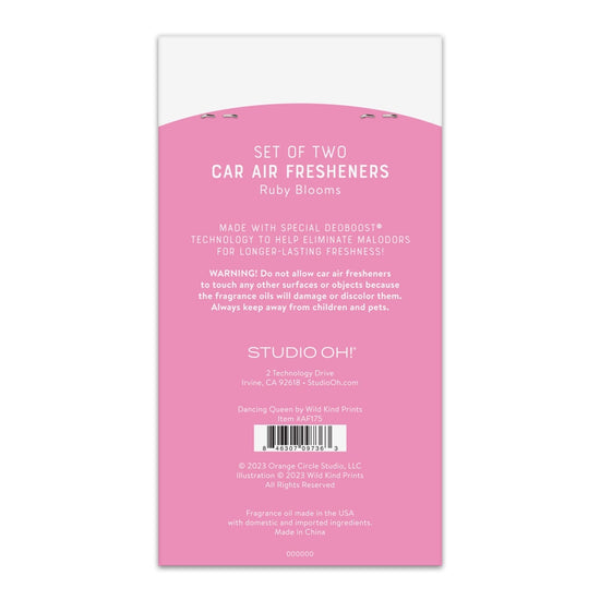 Make your drive time more pleasant with colorful car air fresheners from Studio Oh! These fragrance-infused designs help eliminate malodors and create long-lasting freshness in your vehicle. With two car air fresheners per package, you can mix and match designs between cars or keep a spare tucked in your glove box. • Hangs by an elastic band with a decorative wooden bead • Includes a scent-test sticker on each package • Showcases colorful artwork • WARNING! Do not allow car air fresheners to touch any other surfaces or objects because the fragrance oils will damage or discolor them. Always keep away from children and pets. Set of two car air fresheners Package: 4"w × 7.5"h (10 cm × 19 cm) Fragrance: Ethereal petals of starlit magnolia gleam with a floral medley of pure tuberose, creamy gardenia, and night-blessing jasmine with touches of powdery heliotrope and white musk.